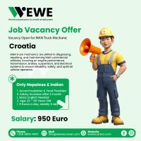 We are seeking 5-6 experienced MAN Truck Mechanics to join our team in Križevci, Croatia. The ideal candidates will have solid knowledge and hands-on experience in repairing and maintaining MAN trucks, as our company exclusively works with MAN vehicles.